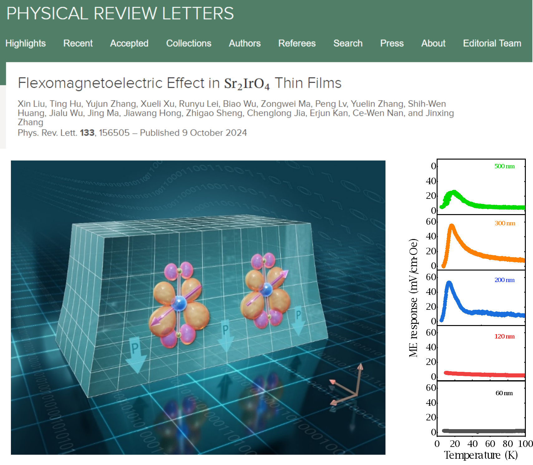 色情直播 张金星课题组与合作者以“Flexomagnetoelectric Effect in Sr2IrO4 Thin Films”为题在《物理评论快报》上发表学术成果,该研究发现了通向磁电效应的新途径。