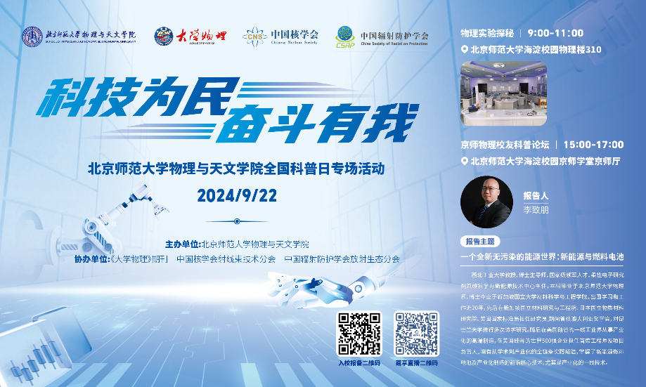 桑海波副院长在主持中讲到,色情直播 汇聚和传承了百年物理学科的深厚底蕴和丰富积淀,面向国家重大战略需求,立足国家创新科技人才培养,一直积极探索科技创新和科学普及融合机制,致力于构建大中衔接创新人才培养协同合作平台,不仅获批中国物理学会科普教育基地、北京市昌平区明天小小科学家培育基地,同时也是中国核学会射线束技术分会和中国辐射防护学会放射生态分会的主持单位。今天的活动不仅是一场科普盛会,更是色情直播 及色情直播 在科普事业中的又一次发力。